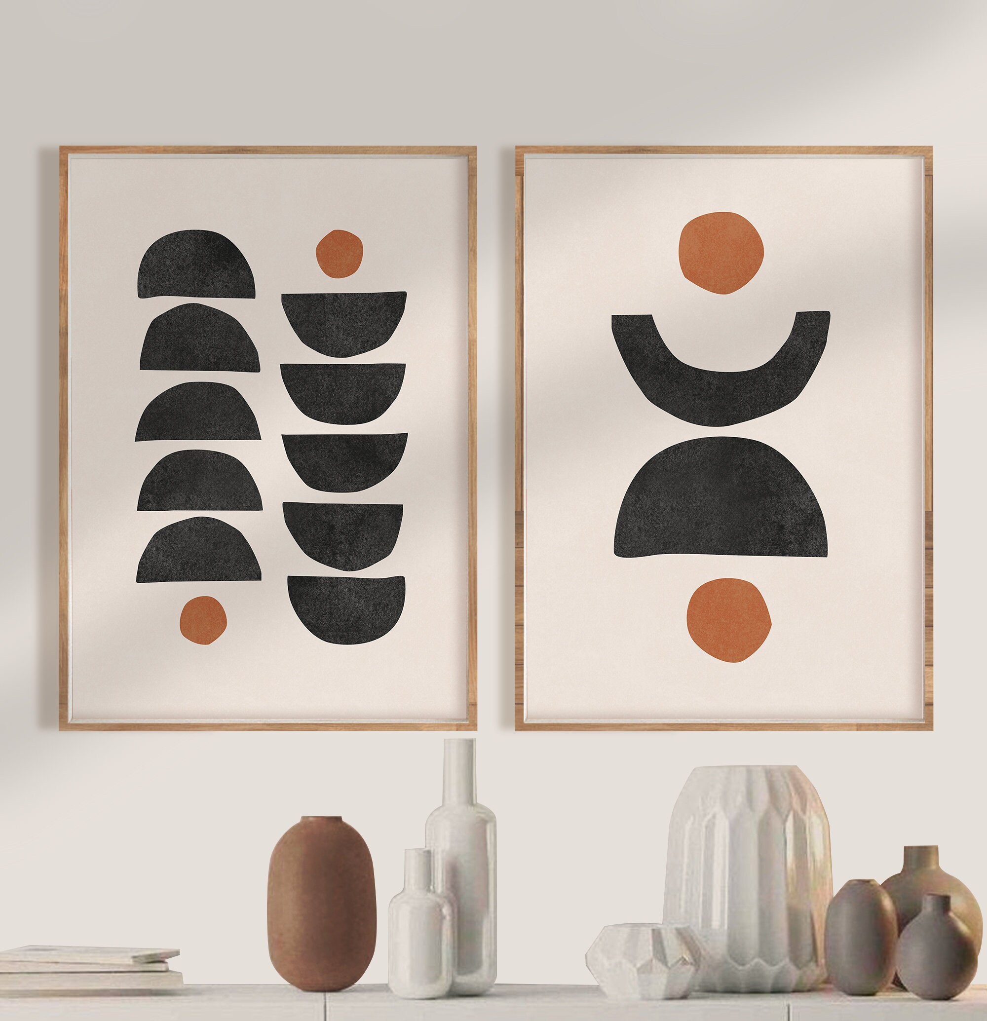 mid century modern wall art print set of 2 neutral abstract etsy