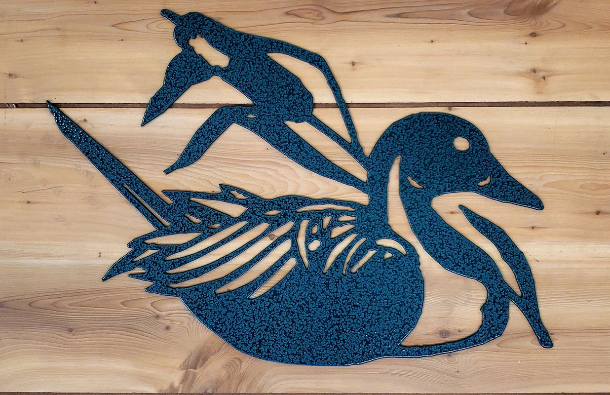 cool ducks in flight wall art. nature or wildlife duck silhouettes – horsefly metal works llc